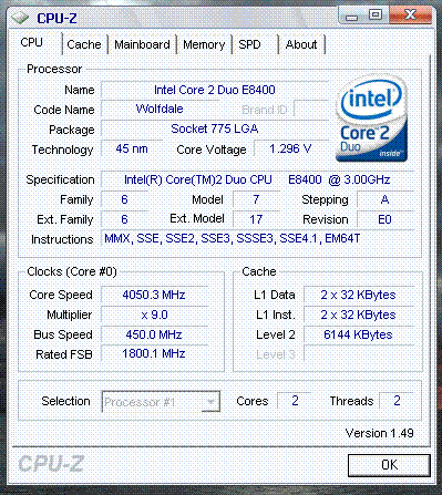 Результат разгона Intel Core 2 Duo (Wolfdale)