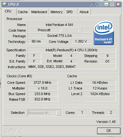 | Процессор (ядро) | Intel Pentium 4 (Prescott) |