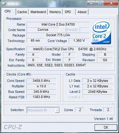 | Разгон, максимально стабильная частота (FSB x Ratio) | 3450 (345 x 10.0) |
