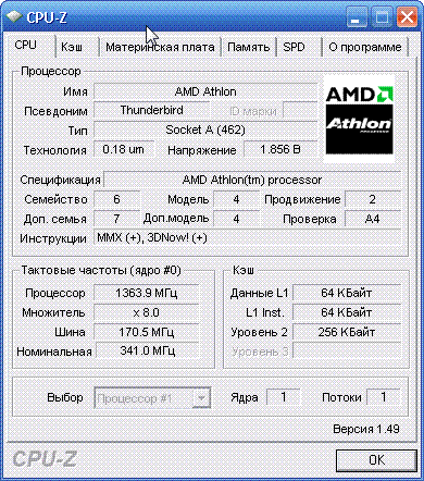 | Процессор (ядро) | AMD Athlon (Thunderbird) |