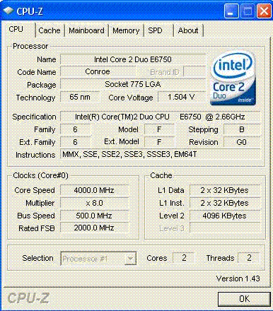 Результат разгона Intel Core 2 Duo (Conroe)