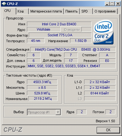 Результат разгона Intel Core 2 Duo (Wolfdale)