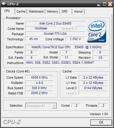 Результат разгона Intel Core 2 Duo (Wolfdale)