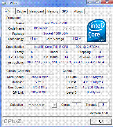 | Процессор (ядро) | Intel Core i7 (Bloomfield) |