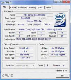 Результат разгона Intel Core 2 Quad (Kentsfield)