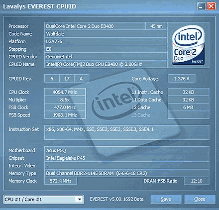 Результат разгона Intel Core 2 Duo (Wolfdale)