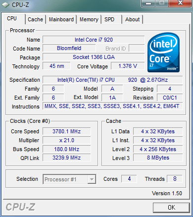 | Разгон, максимально стабильная частота (FSB x Ratio) | 3780 (180 x 21.0) |