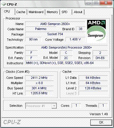 | Процессор (ядро) | AMD Sempron (Palermo) |