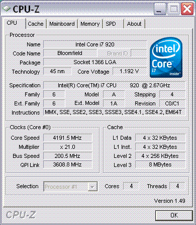 | Разгон, максимально стабильная частота (FSB x Ratio) | 4200 (200 x 21.0) |