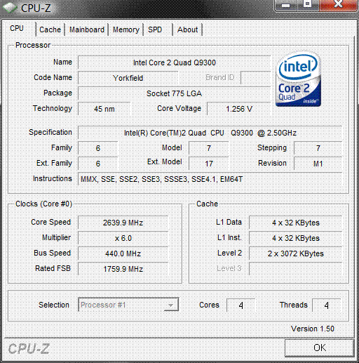 Результат разгона Intel Core 2 Quad (Yorkfield)
