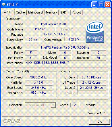 | Разгон, максимально стабильная частота (FSB x Ratio) | 3920 (245 x 16.0) |
