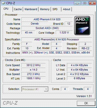 | Процессор (ядро) | AMD Phenom II X4 (Deneb) |