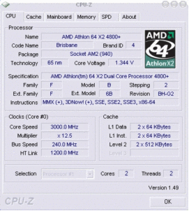 Результат разгона AMD Athlon 64 X2 (Brisbane)