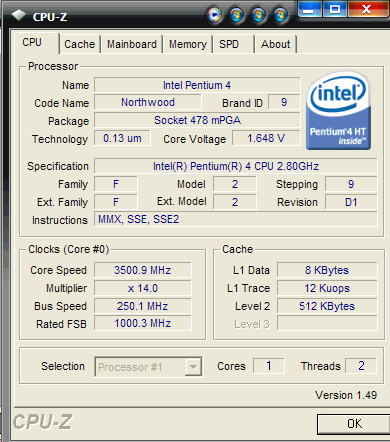 | Процессор (ядро) | Intel Pentium 4 (Northwood) |