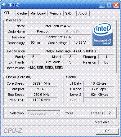 | Разгон, максимально стабильная частота (FSB x Ratio) | 3920 (280 x 14.0) |