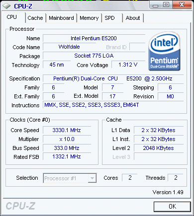 Результат разгона Intel Pentium Dual-Core (Wolfdale-2M)