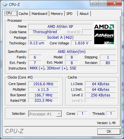| Процессор (ядро) | AMD Athlon XP (Thoroughbred) |