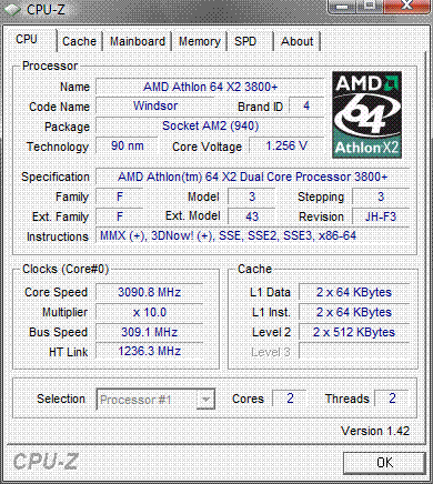 | Процессор (ядро) | AMD Athlon 64 X2 (Windsor) |