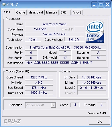 Результат разгона Intel Core 2 Quad (Yorkfield)
