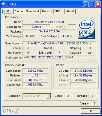 Результат разгона Intel Core 2 Duo (Conroe)