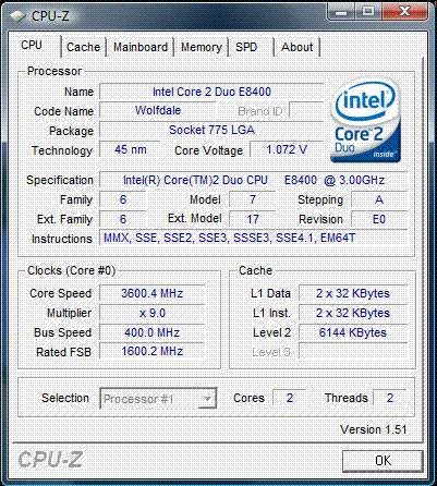 Результат разгона Intel Core 2 Duo (Wolfdale)