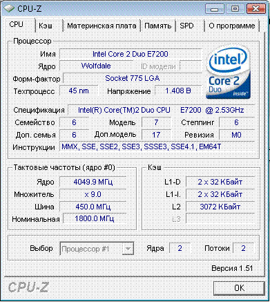 Результат разгона Intel Core 2 Duo (Wolfdale)