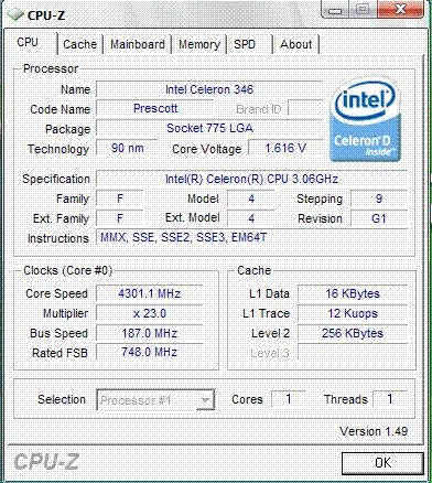 Результат разгона Intel Celeron D (Prescott-256)