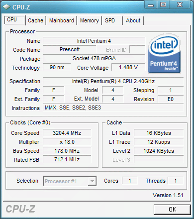 | Процессор (ядро) | Intel Pentium 4 (Prescott) |