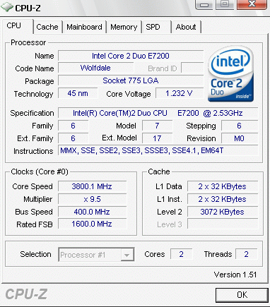 Результат разгона Intel Core 2 Duo (Wolfdale)