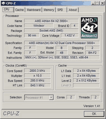 | Процессор (ядро) | AMD Athlon 64 X2 (Windsor) |