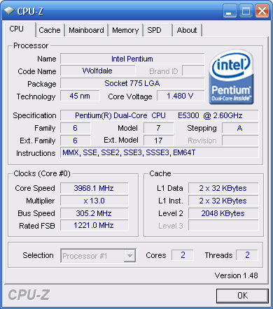 Результат разгона Intel Pentium Dual-Core (Wolfdale-2M)