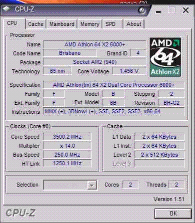 Результат разгона AMD Athlon 64 X2 (Brisbane)