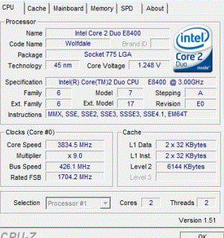 Результат разгона Intel Core 2 Duo (Wolfdale)