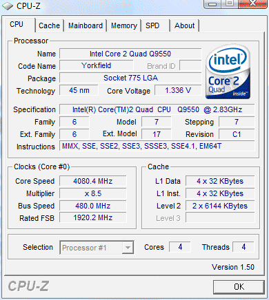 Результат разгона Intel Core 2 Quad (Yorkfield)