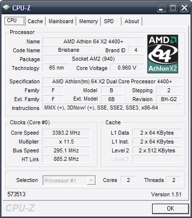 Результат разгона AMD Athlon 64 X2 (Brisbane)