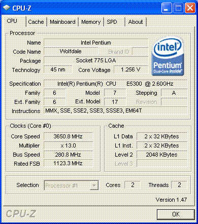 Результат разгона Intel Core 2 Duo (Wolfdale)