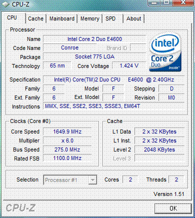 Результат разгона Intel Core 2 Duo (Conroe-2M)