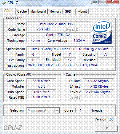 Результат разгона Intel Core 2 Quad (Yorkfield)