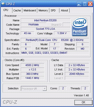 Результат разгона Intel Pentium Dual-Core (Wolfdale-2M)