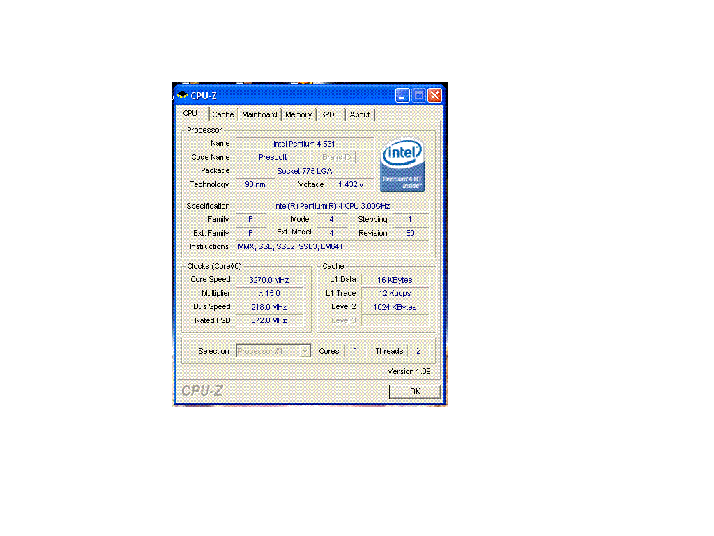 | Процессор (ядро) | Intel Pentium 4 (Prescott) |