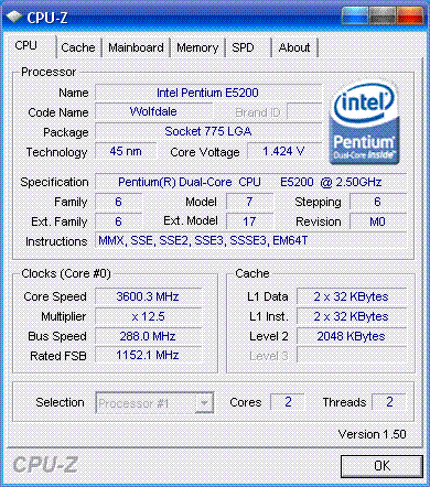 Результат разгона Intel Pentium Dual-Core (Wolfdale-2M)