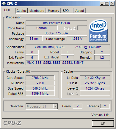 | Процессор (ядро) | Intel Pentium Dual-Core (Conroe-1M) |