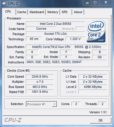 Результат разгона Intel Core 2 Duo (Conroe)