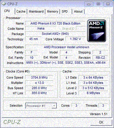 | Процессор (ядро) | AMD Phenom II X3 (Heka) |