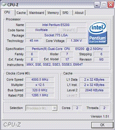 Результат разгона Intel Pentium Dual-Core (Wolfdale-2M)