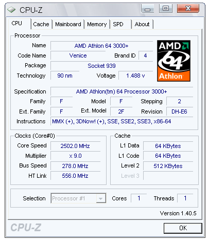 | Процессор (ядро) | AMD Athlon 64 (Venice) |