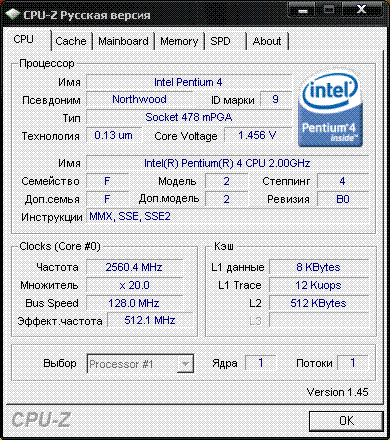 | Процессор (ядро) | Intel Pentium 4 (Northwood) |