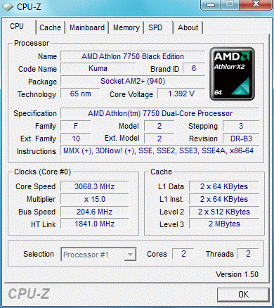Результат разгона AMD Athlon X2 (Kuma)