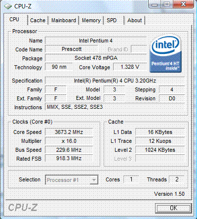 | Процессор (ядро) | Intel Pentium 4 (Prescott) |