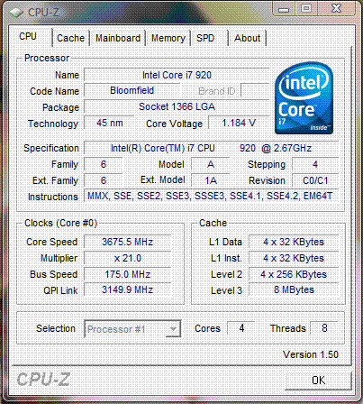 | Разгон, максимально стабильная частота (FSB x Ratio) | 3675 (175 x 21.0) |